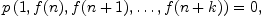 p\left(1, f(n), f(n+1),\dots,f(n+k)\right)=0,