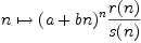 n\mapsto (a+bn)^n \frac{r(n)}{s(n)}