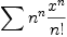 where p is a polynomial with coefficients in \mathbb K[z]. A typical example is \sum n^n\frac{x^n}{n!}: