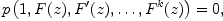 p\left(1, F(z), F^\prime(z),\dots,F^{k}(z)\right)=0,