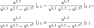 {{{u^{2, \: 2}}\over{{{u^{1, \: 1}}\ {u^{2, \: 2}}}-{{u^{1, \: 2}}\ {u^{2, \: 1}}}}}\ {|_{1 \  1}}}-{{{u^{1, \: 2}}\over{{{u^{1, \: 1}}\ {u^{2, \: 2}}}-{{u^{1, \: 2}}\ {u^{2, \: 1}}}}}\ {|_{1 \  2}}}-
